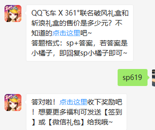 问题:QQ飞车 X 361°联名破风礼盒和斩浪礼盒的售价是多少元?